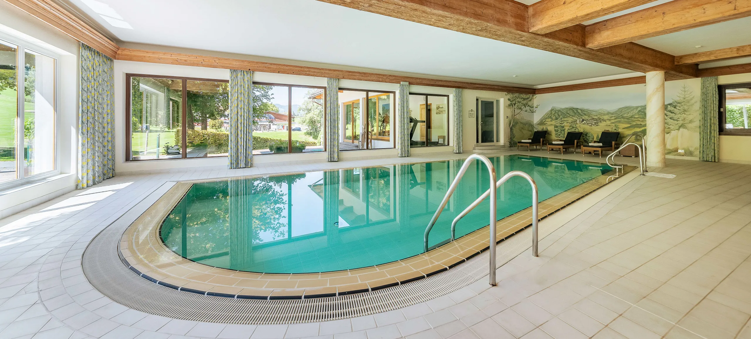 Genießen Sie entspannte Stunden in unserem Schwimmbad mit Blick auf den Hahnenkamm – ein Panorama, das zu jeder Jahreszeit begeistert. Ob ein paar ruhige Bahnen am Morgen oder ein entspannter Ausklang am Abend: Hier verbinden sich Bewegung und Erholung auf besondere Weise.